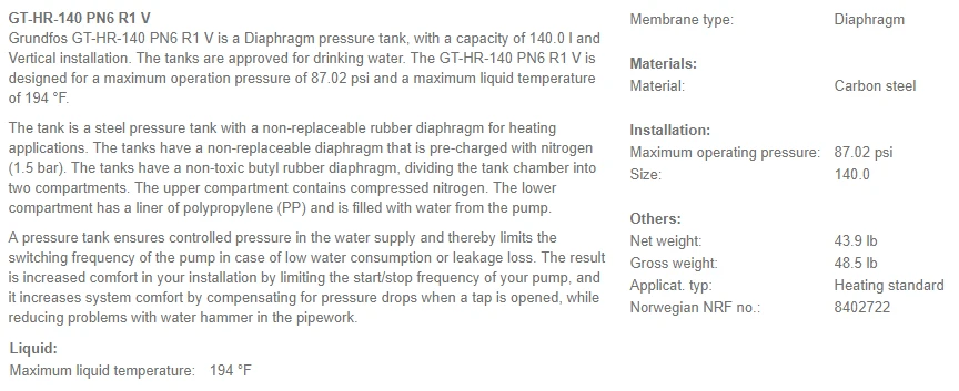 Grundfos GT tanks ensure long, maintenance-free, reliable and controlled operation and can be integrated in many different systems with a wide variety of pumps. The large number of tank sizes and types available makes it possible to select the pressure tank that best suits your application and system.