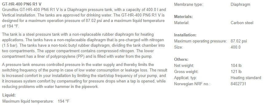 Grundfos GT tanks ensure long, maintenance-free, reliable and controlled operation and can be integrated in many different systems with a wide variety of pumps. The large number of tank sizes and types available makes it possible to select the pressure tank that best suits your application and system.