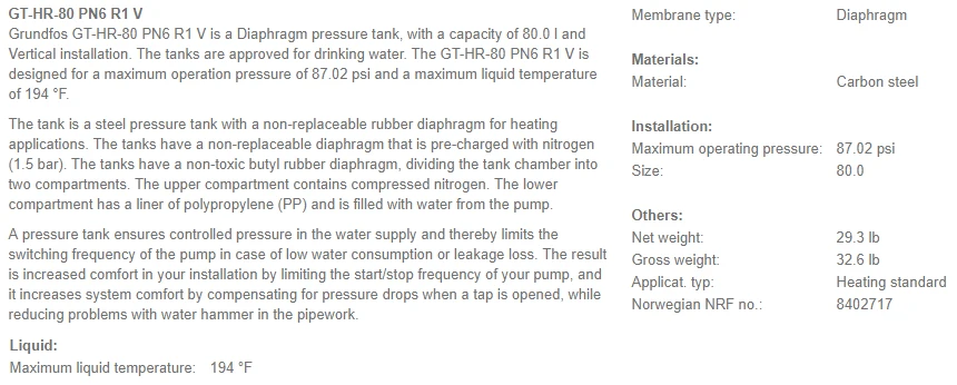 Grundfos GT tanks ensure long, maintenance-free, reliable and controlled operation and can be integrated in many different systems with a wide variety of pumps. The large number of tank sizes and types available makes it possible to select the pressure tank that best suits your application and system.