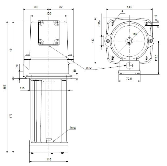 - The pump is closed-coupled without shaft seal.