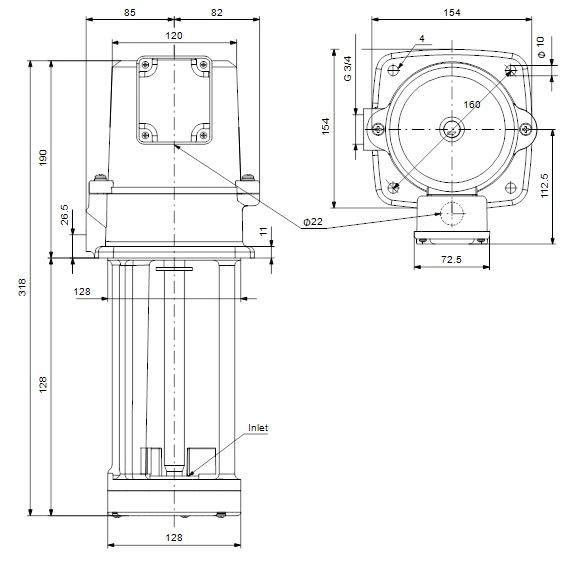 - Phase: – The pump is fitted with a 3-phase integrated motor.