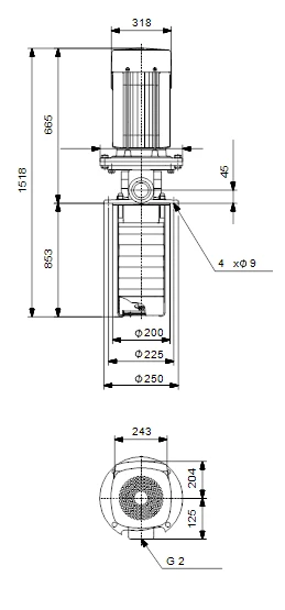 Multistage, immersible, self-priming, centrifugal pump for vertical installation in tanks etc. The pump head and base are in cast iron – all other wetted parts are in stainless steel. The pump has the following characteristics: