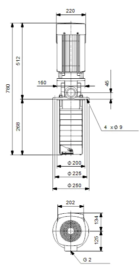 Multistage, immersible, self-priming, centrifugal pump for vertical installation in tanks etc. The pump head and base are in cast iron – all other wetted parts are in stainless steel. The pump has the following characteristics: