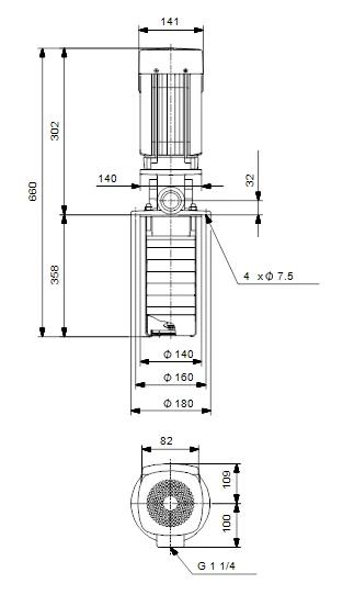 Multistage, immersible, self-priming, centrifugal pump for vertical installation in tanks etc. The pump head and base are in cast iron – all other wetted parts are in stainless steel. The pump has the following characteristics: