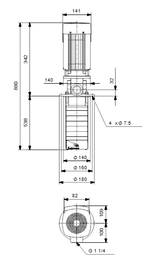 Multistage, immersible, self-priming, centrifugal pump for vertical installation in tanks etc. The pump head and base are in cast iron – all other wetted parts are in stainless steel. The pump has the following characteristics: