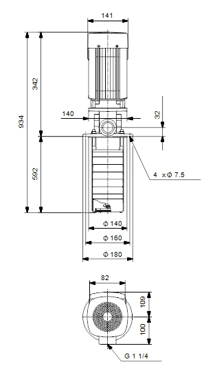 Multistage, immersible, self-priming, centrifugal pump for vertical installation in tanks etc. The pump head and base are in cast iron – all other wetted parts are in stainless steel. The pump has the following characteristics: