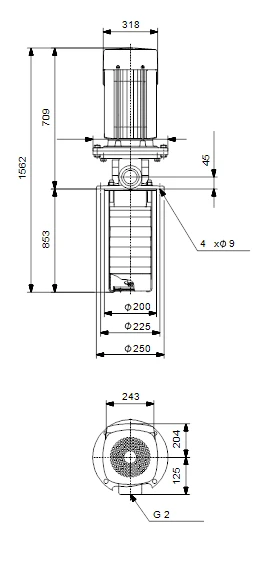 Multistage, immersible, self-priming, centrifugal pump for vertical installation in tanks etc. The pump head and base are in cast iron – all other wetted parts are in stainless steel. The pump has the following characteristics: