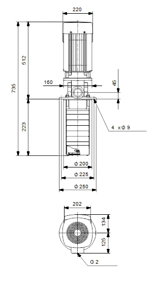 Multistage, immersible, self-priming, centrifugal pump for vertical installation in tanks etc. The pump head and base are in cast iron – all other wetted parts are in stainless steel. The pump has the following characteristics: