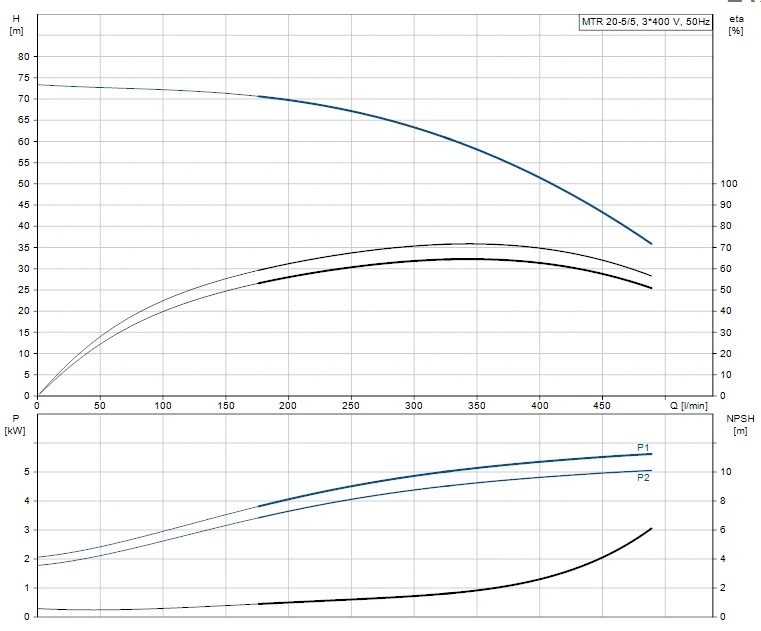 Multistage, immersible, self-priming, centrifugal pump for vertical installation in tanks etc. The pump head and base are in cast iron – all other wetted parts are in stainless steel. The pump has the following characteristics: