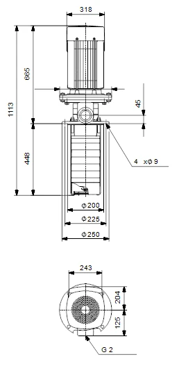 Multistage, immersible, self-priming, centrifugal pump for vertical installation in tanks etc. The pump head and base are in cast iron – all other wetted parts are in stainless steel. The pump has the following characteristics: