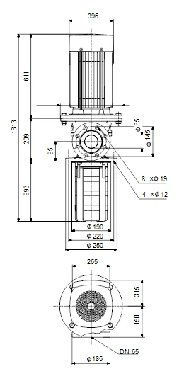 Multistage, immersible, self-priming, centrifugal pump for vertical installation in tanks etc. The pump head and base are in cast iron – all other wetted parts are in stainless steel. The pump has the following characteristics: