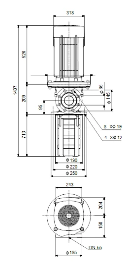 - Impellers, intermediate chambers and spline shaft are made of stainless steel.