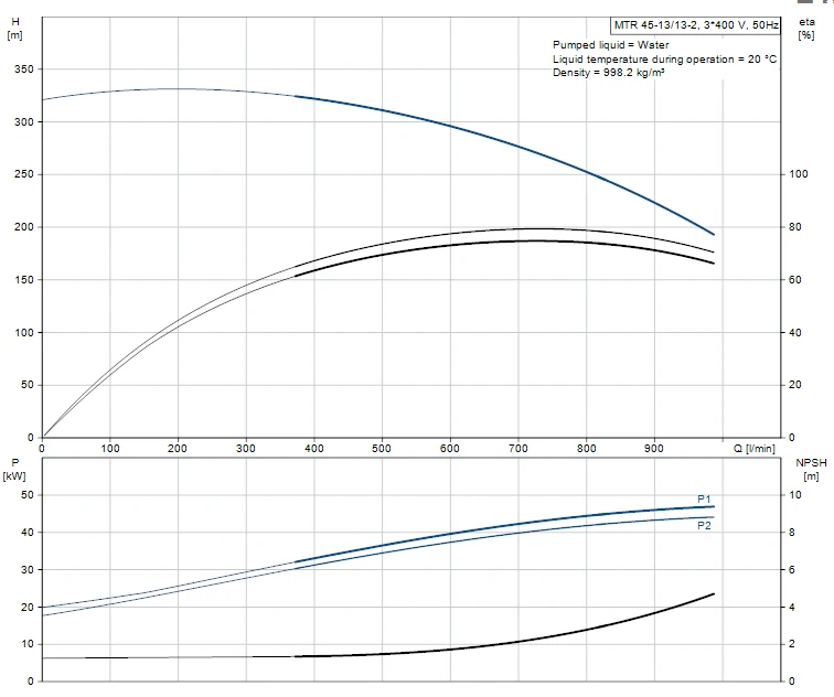 Multistage, immersible, self-priming, centrifugal pump for vertical installation in tanks etc. The pump head and base are in cast iron – all other wetted parts are in stainless steel. The pump has the following characteristics: