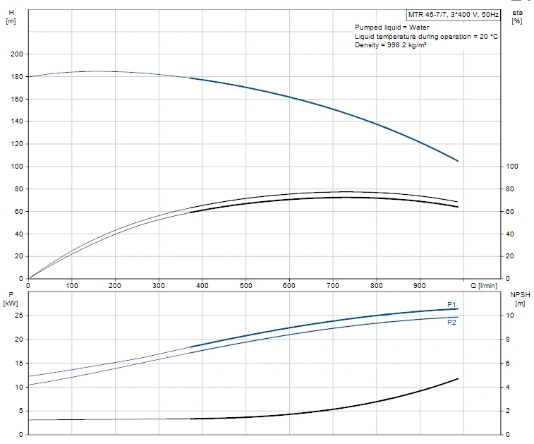 Multistage, immersible, self-priming, centrifugal pump for vertical installation in tanks etc. The pump head and base are in cast iron – all other wetted parts are in stainless steel. The pump has the following characteristics: