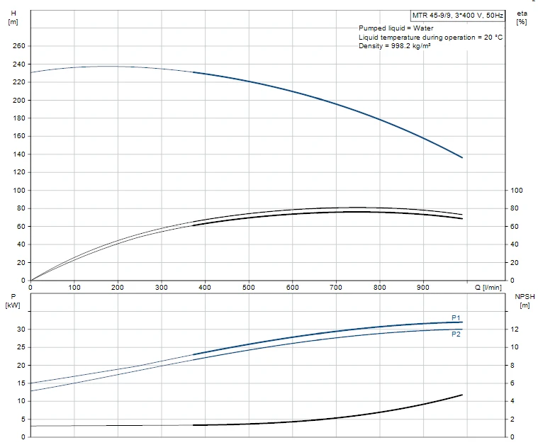 Multistage, immersible, self-priming, centrifugal pump for vertical installation in tanks etc. The pump head and base are in cast iron – all other wetted parts are in stainless steel. The pump has the following characteristics: