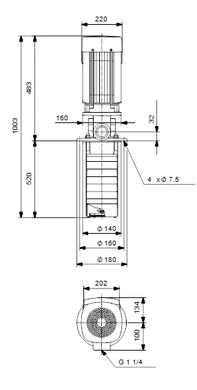 Multistage, immersible, self-priming, centrifugal pump for vertical installation in tanks etc. The pump head and base are in cast iron – all other wetted parts are in stainless steel. The pump has the following characteristics: