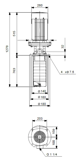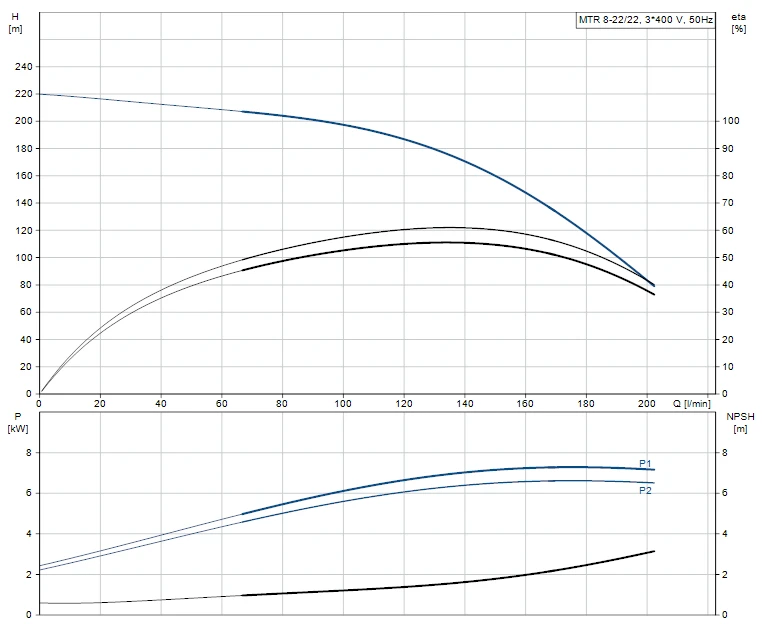 Multistage, immersible, self-priming, centrifugal pump for vertical installation in tanks etc. The pump head and base are in cast iron – all other wetted parts are in stainless steel. The pump has the following characteristics: