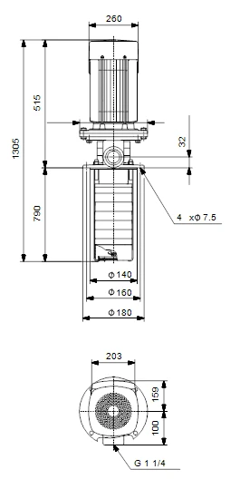 Multistage, immersible, self-priming, centrifugal pump for vertical installation in tanks etc. The pump head and base are in cast iron – all other wetted parts are in stainless steel. The pump has the following characteristics:
