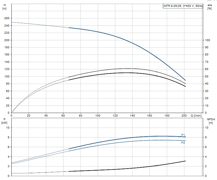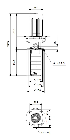 Multistage, immersible, self-priming, centrifugal pump for vertical installation in tanks etc. The pump head and base are in cast iron – all other wetted parts are in stainless steel. The pump has the following characteristics: