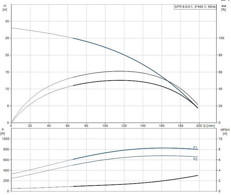 Multistage, immersible, self-priming, centrifugal pump for vertical installation in tanks etc. The pump head and base are in cast iron – all other wetted parts are in stainless steel. The pump has the following characteristics: