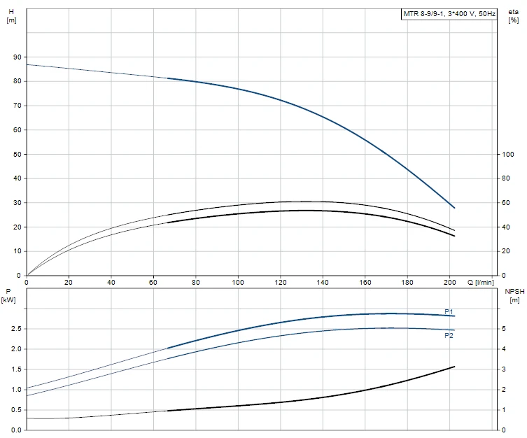 Multistage, immersible, self-priming, centrifugal pump for vertical installation in tanks etc. The pump head and base are in cast iron – all other wetted parts are in stainless steel. The pump has the following characteristics: