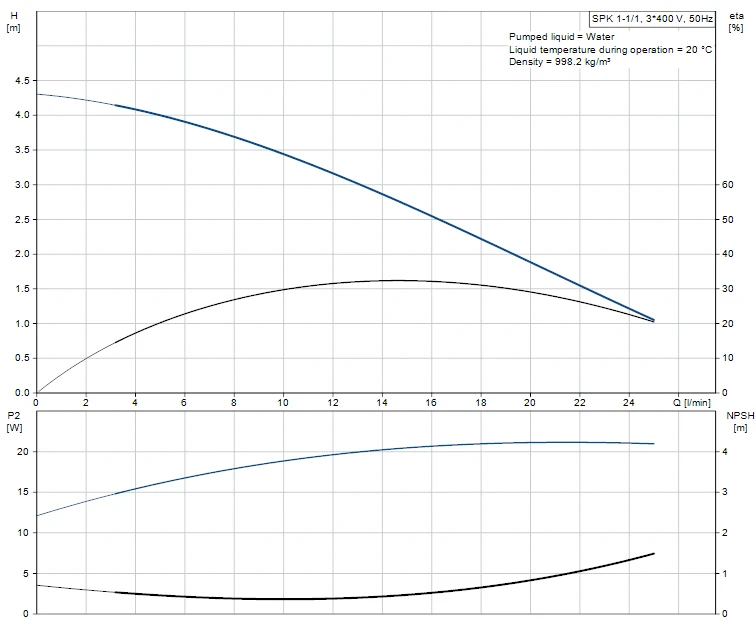 Multistage, immersible, self-priming, centrifugal pump for vertical and horizontal installation in tanks etc. The pump head is in cast iron – all other wetted parts are in stainless steel. The pump has the following characteristics: