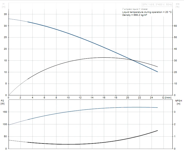 Multistage, immersible, self-priming, centrifugal pump for vertical and horizontal installation in tanks etc. The pump head is in cast iron – all other wetted parts are in stainless steel. The pump has the following characteristics: