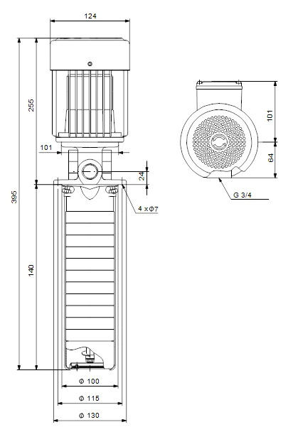 Multistage, immersible, self-priming, centrifugal pump for vertical and horizontal installation in tanks etc. The pump head is in cast iron – all other wetted parts are in stainless steel. The pump has the following characteristics: