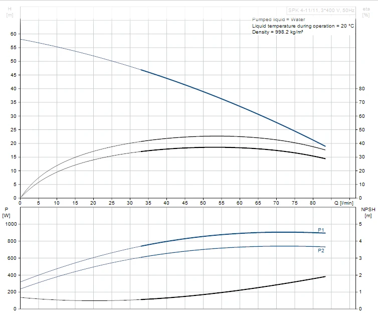 Multistage, immersible, self-priming, centrifugal pump for vertical and horizontal installation in tanks etc. The pump head is in cast iron – all other wetted parts are in stainless steel. The pump has the following characteristics: