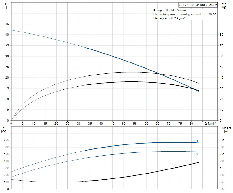 Multistage, immersible, self-priming, centrifugal pump for vertical and horizontal installation in tanks etc. The pump head is in cast iron – all other wetted parts are in stainless steel. The pump has the following characteristics: