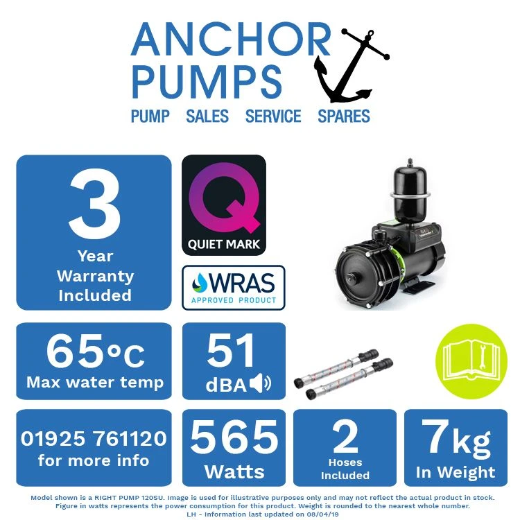 This premium 3.6 bar single ended pump will also quietly and efficiently boost the hot or cold water supplies to your shower, wash basin, bath and kitchen taps in a negative head or positive head gravity fed installation.Â