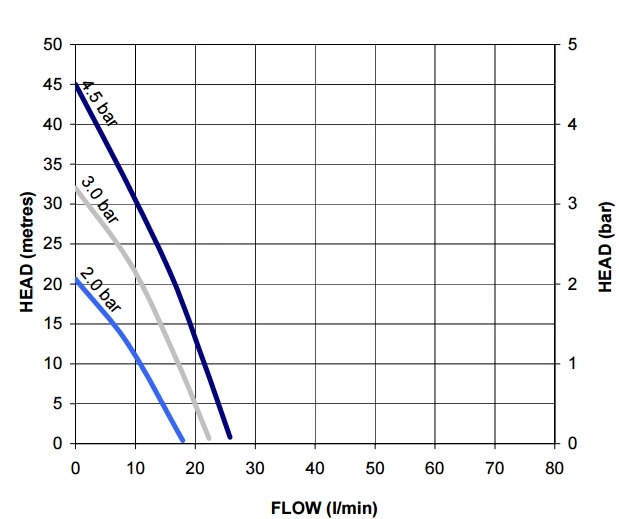 Monsoon Universal single head pumps can be used in pairs to boost vented systems to pump hot and cold water supplies independently, or as a single pump to boost a water supply as required. The U2.0 Bar Single pump is suitable for positive and negative head applications.