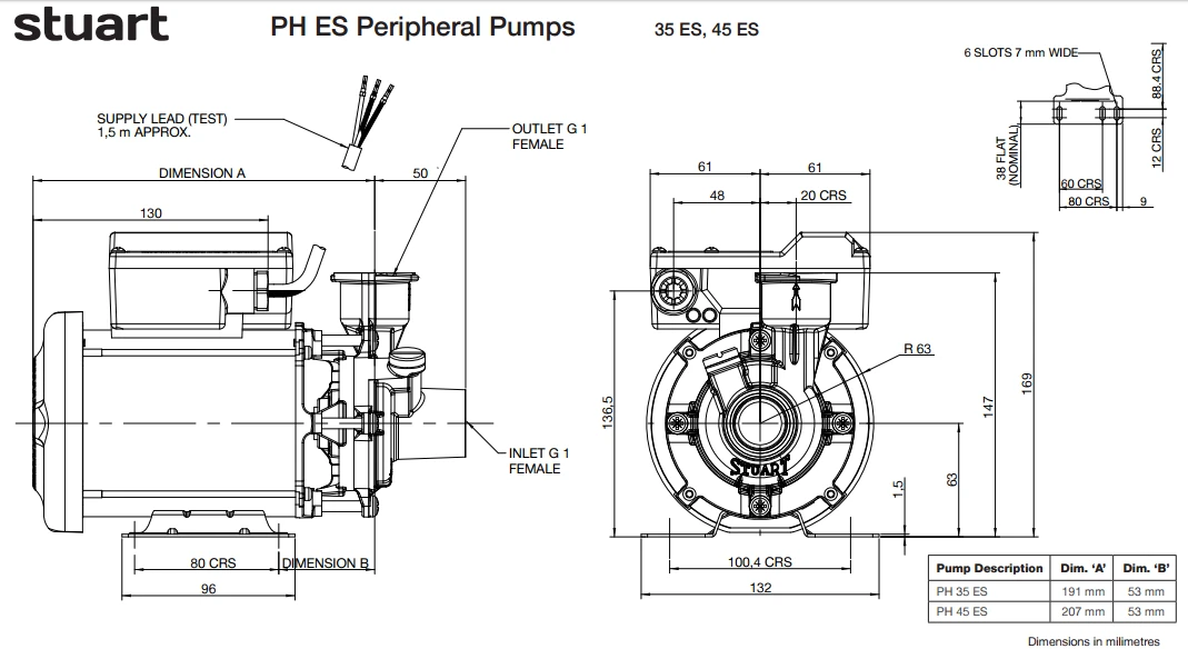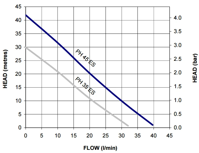The range of PH ES peripheral pumps is designed to pump clean, fresh water. Other clean, non aggressive, non explosive liquids with similar characteristics to water may be pumped. The PH ES range can be used for pressure boosting, fluid transfer and distribution. They are suitable for flooded suction applications. Alternatively a maximum suction lift of 4.6 m is permitted when using a Stuart footvalve/strainer.
