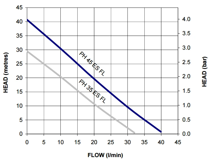 The PH 35 ES FL and 45 ES FL range of automatic flow switch pumps offers a simple solution to pressure boosting where a gravity flow of approximately 1 l/min already exists.