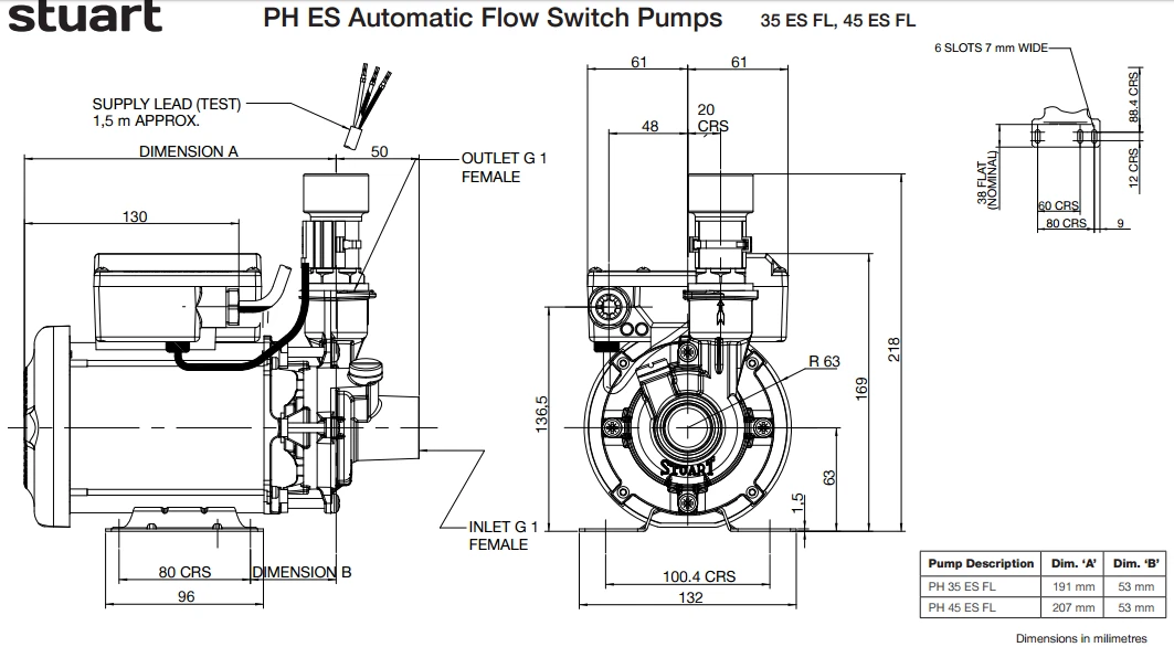 This pump has EPDM/PTFE/Al. Oxide seals, G 3/4″ female inlet and G 3/4″ male outlet connections.