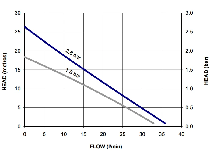 Showermate Standard pumps are designed for domestic use only and will only function under positive head conditions. The standard twin and single pumps are suitable for