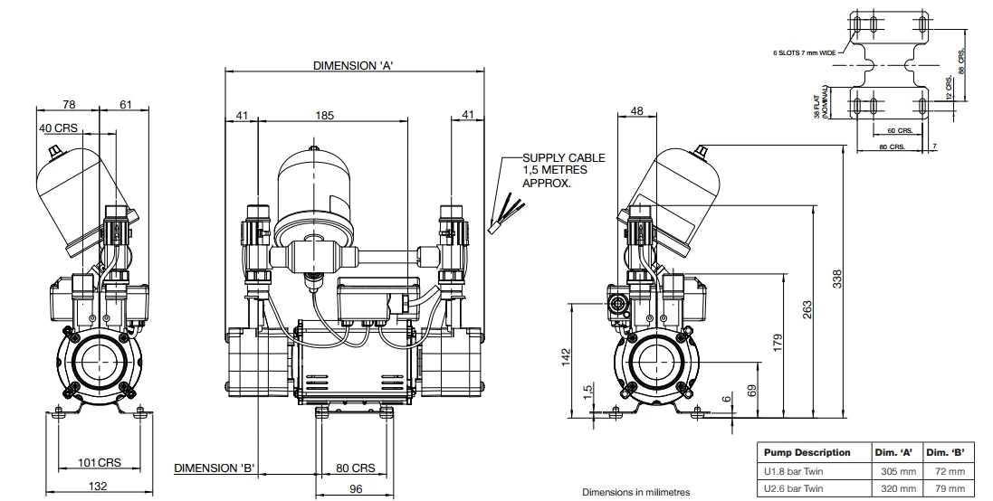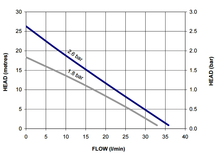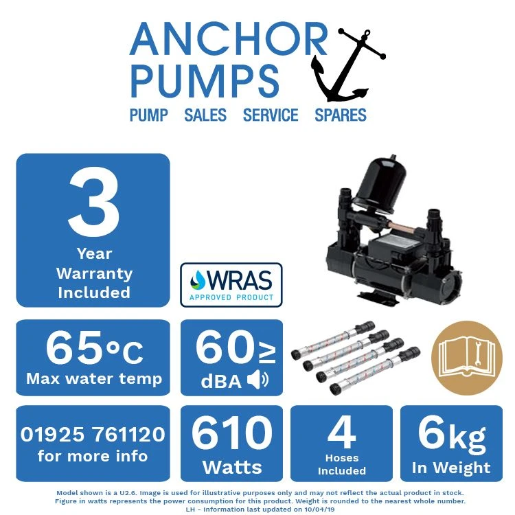 The Showermate Universal U2.6 Bar Twin pump can be used for positive and negative head applications.